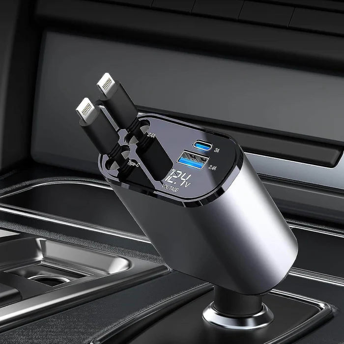 4 in 1 Retractable Car Phone Charger